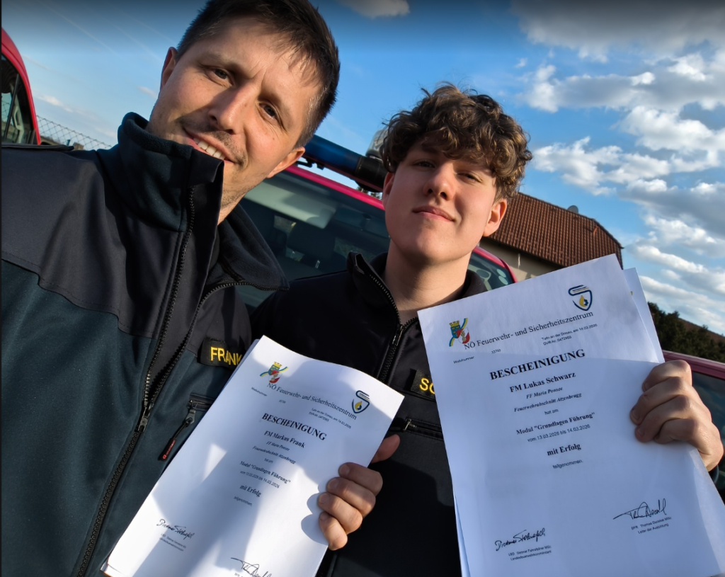 Am 13. und 14. MĂ€rz 2026 stellten sich unsere Kameraden Lukas Schwarz und Markus Frank einer neuen Herausforderung: Sie absolvierten den Lehrgang âGrundlagen FĂŒhrenâ (GFĂ) in Bierbaum.