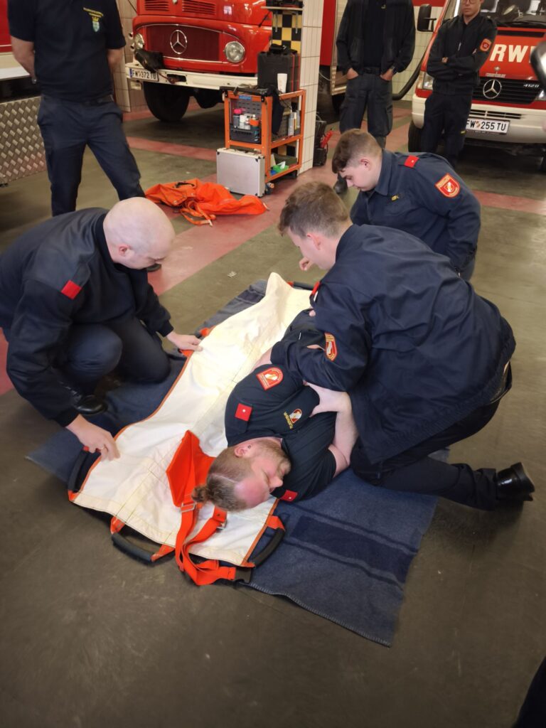 Neben einer intensiven theoretischen Ausbildung stand am zweiten Kurstag die Praxis im Mittelpunkt. An mehreren Stationen wurden realitätsnahe Einsatzsituationen trainiert, bevor als Abschlussübung ein Einsatz in einem komplett verrauchten Weinkeller auf dem Programm stand. Der Auftrag lautete: „Vermisste Person retten“.